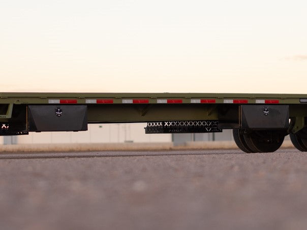 The RawMaxx HTX Trailer is equipped with front and rear tool boxes, each located between risers and featuring lockable latches. These tool boxes provide secure storage for essential equipment, tools, or personal items needed for various hauling tasks, ensuring convenience and organization on the job site or during transport.
