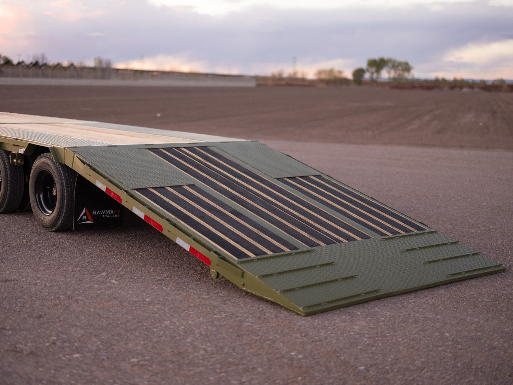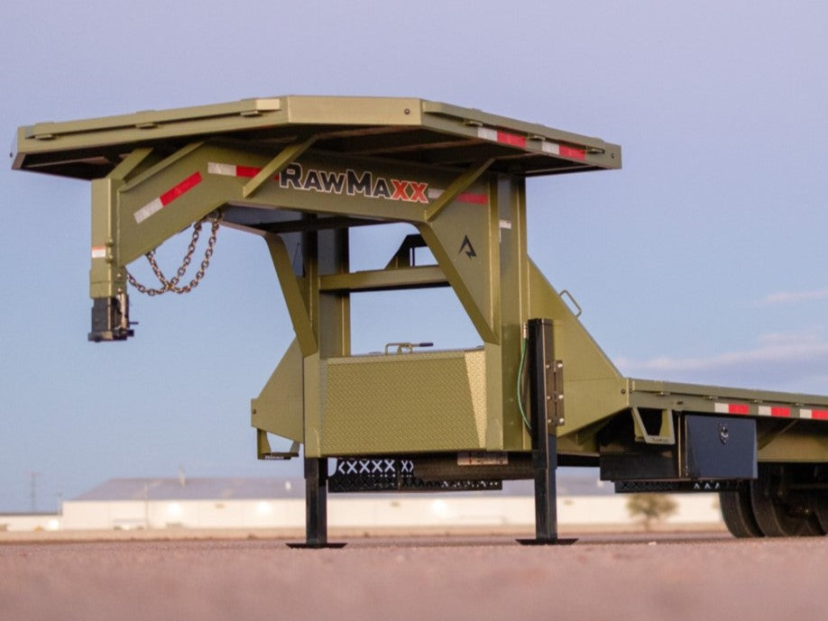 Featuring an 11' hydraulic lift tail, the RawMaxx HTX Trailer facilitates easy loading and unloading of equipment or materials. This hydraulic system provides efficient operation and is crucial for managing heavy payloads with precision and control.