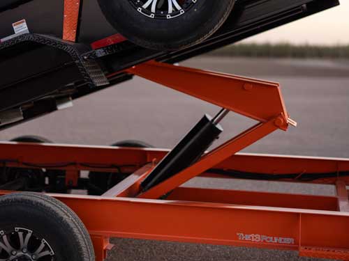 Powered by a KTI 12V hydraulic pump, the LPX dump trailer features a hydraulic power-up and power-down scissor lift system. This system enables easy raising and lowering of the dump bed for efficient loading and unloading tasks, enhancing productivity across all dimensions.