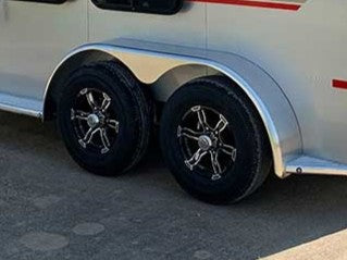 Equipped with rubber torsion axles, 4-wheel electric brakes with safety breakaway, LED lights, and a rear rubber bumper for secure towing and visibility.