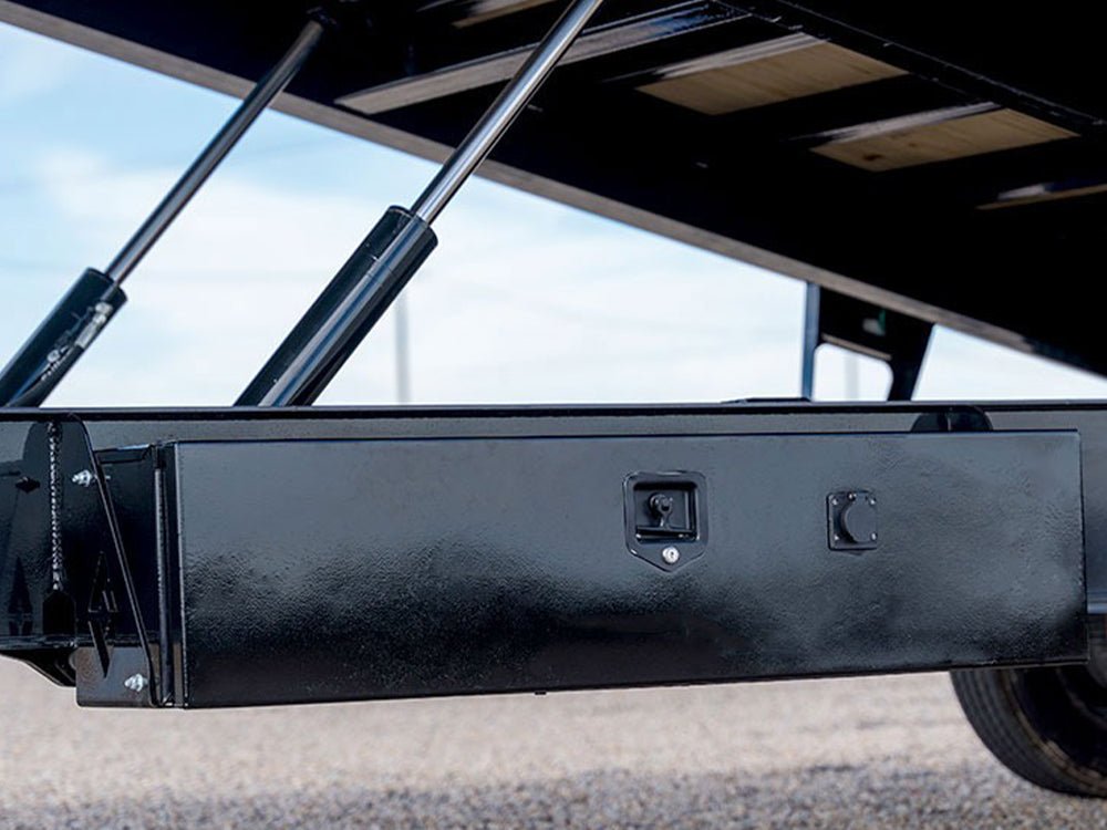 Load heavy equipment with the push of a button. The full-length deck features an electric/hydraulic powered tilt system, providing smooth, reliable, and effortless operation every time. Say goodbye to manual cranking and hello to ultimate convenience.