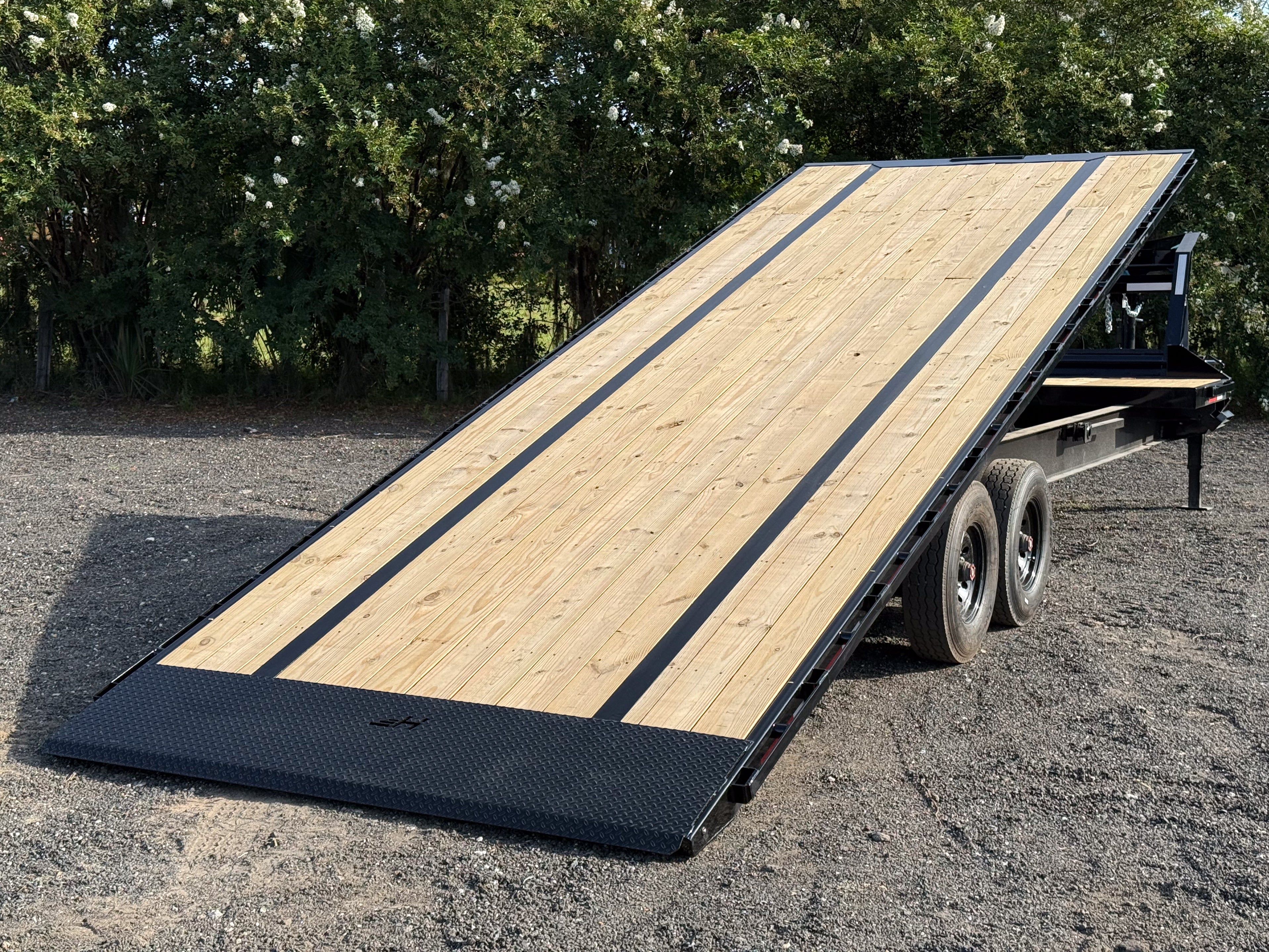 Experience effortless loading with a 24-foot power-up and power-down hydraulic tilt deck. The robust KTI 12V pump and massive 20,000 lb capacity cylinder handle heavy equipment with ease, making loading a one-person job.