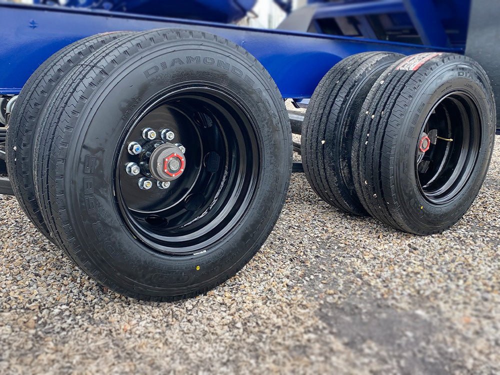 Configure with 10k, 12k, or massive 16k Lippert oil bath axles. The 16k axles are paired with an optional Hutch HD suspension and 18-ply tires to handle the 30,000 lb GVWR under severe conditions.