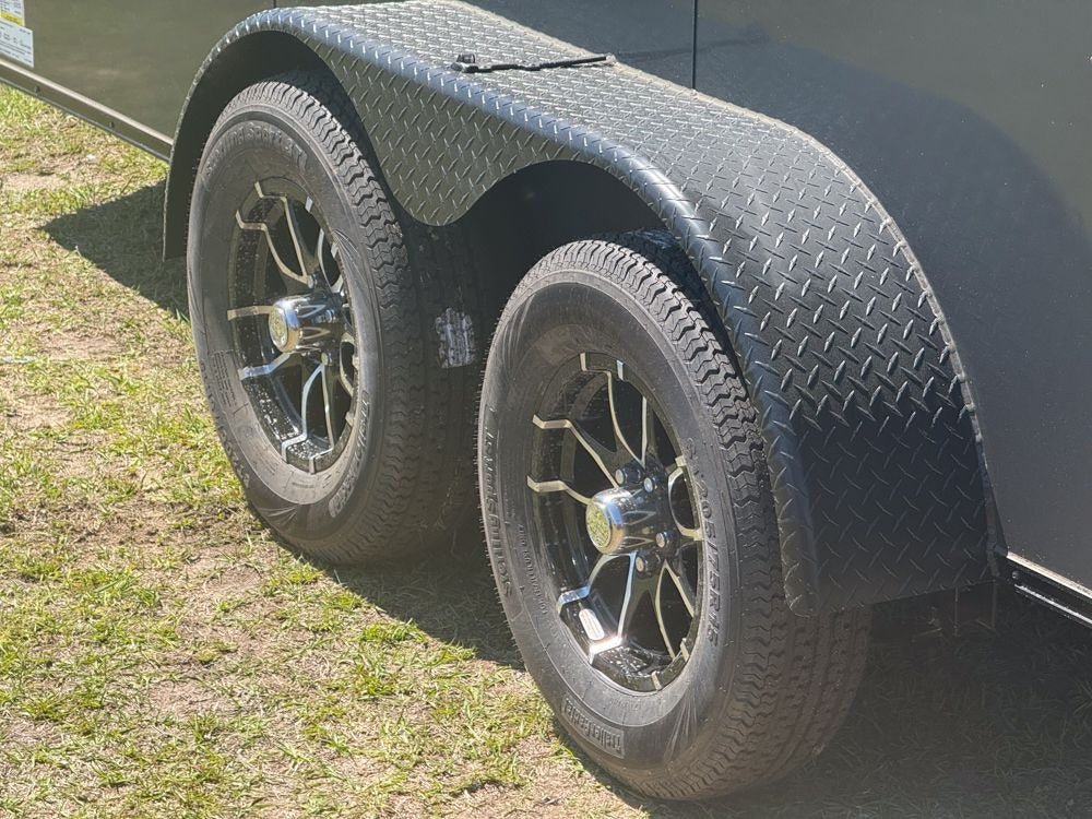 A 4” steel frame (6” or 8” on larger models) with .024” aluminum exterior and black ATP fenders stands strong. The galvalume roof (one-piece on 8.5’ 30’+) and aluminum wheels with black inlay merge resilience with a blackout aesthetic, built for lasting performance.