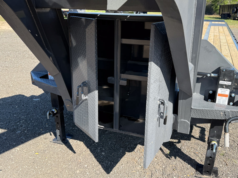 The engineered gooseneck design (98" long, 70" tall) delivers balanced towing and superior strength. A 30K adjustable 2-5/16" coupler and dual 12K side-wind jacks make setup secure and efficient.
