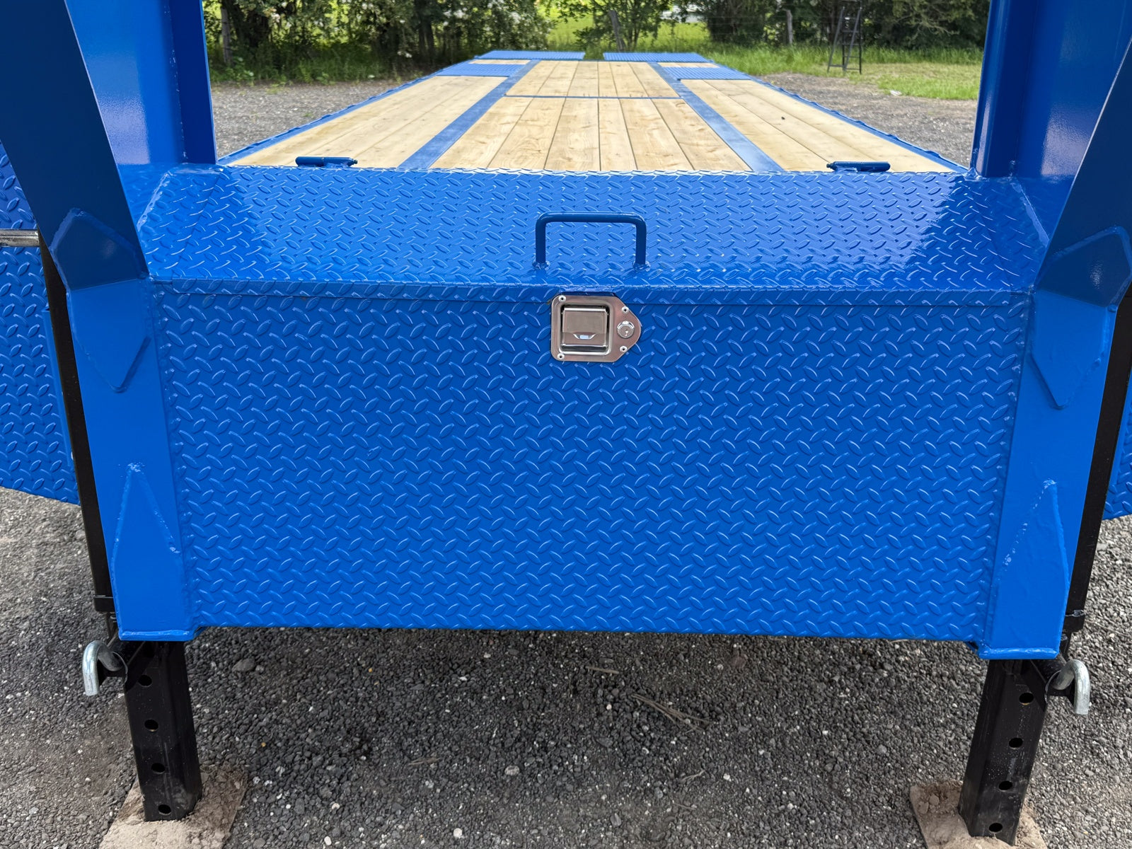Upgrade to a full-width diamond plate front toolbox. It features a gas strut for easy one-handed opening and an EZ-latch mechanism for quick, secure closure, providing maximum weatherproof storage for all your gear.
