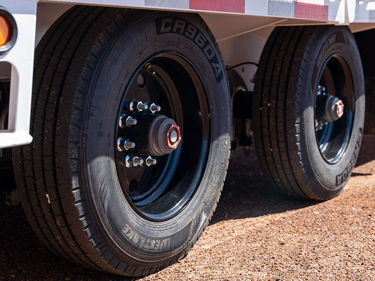 Built for stability and strength, our dual 10k or 12k Lippert Super Single Oil Bath Axles provide exceptional load capacity and performance. Paired with 18-ply radial tires and 17.5" wheels, this robust running gear delivers smooth towing and reliable performance under heavy loads.