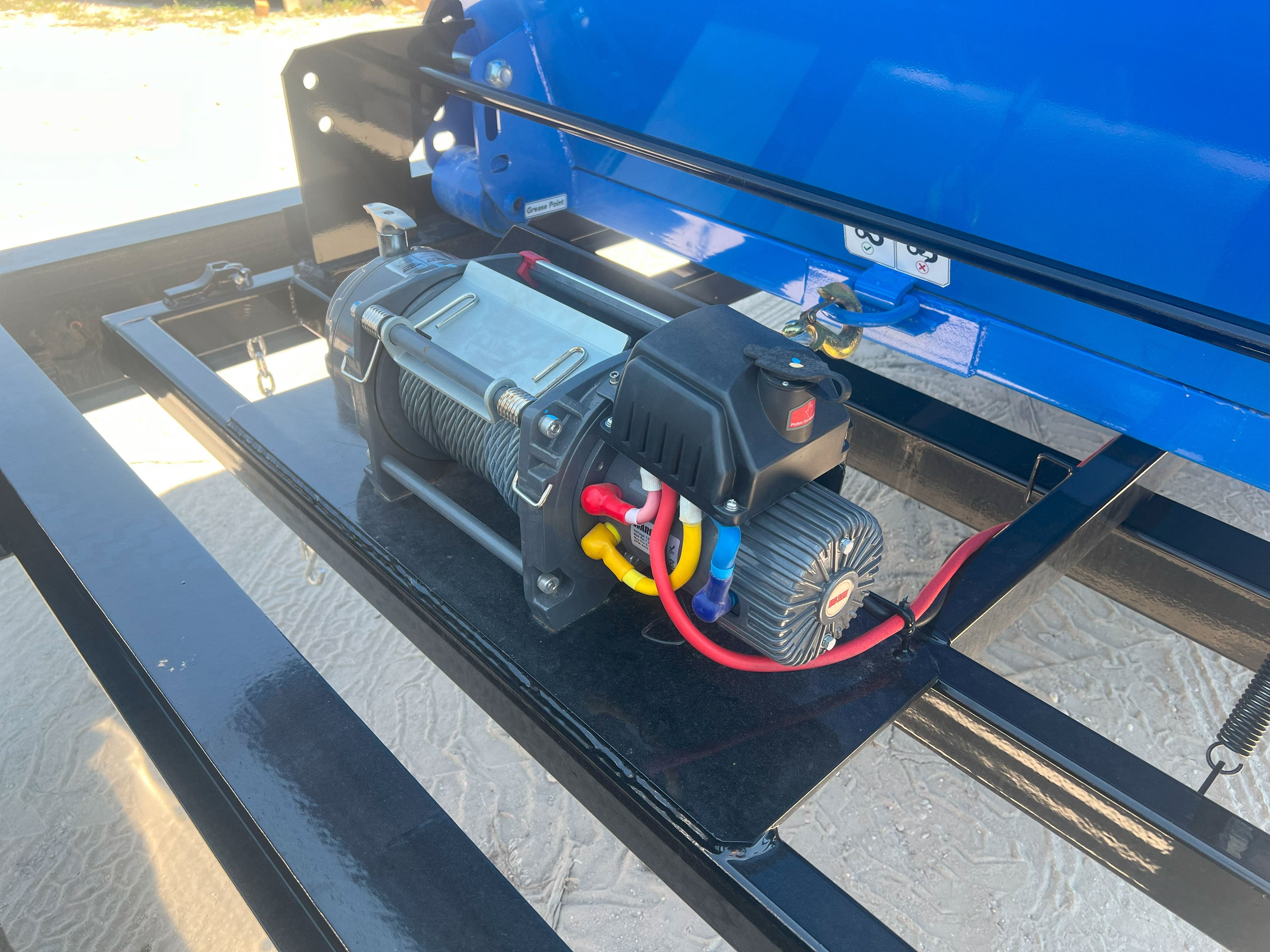 Explore Horizon trailer's 17,500 lbs Warrior winch. With wireless control, a 7.2 hp electric motor, and dual marine batteries, it's a reliable asset for any task. Plus, with an on-board trickle charger, it's always prepared for action.