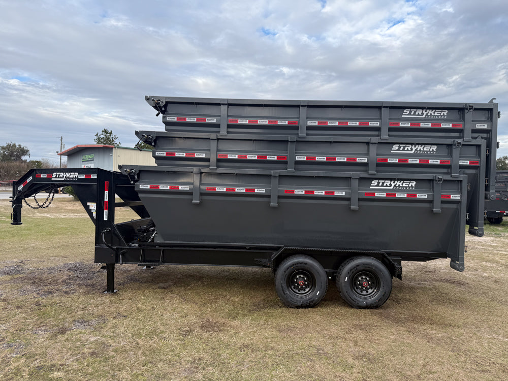 The Stryker Roll Off Package includes 1 heavy-duty base trailer and 3 roll-off bins (83" x 14' or 16' with 4' sides), providing a versatile all-in-one solution for transporting and managing heavy loads with ease.