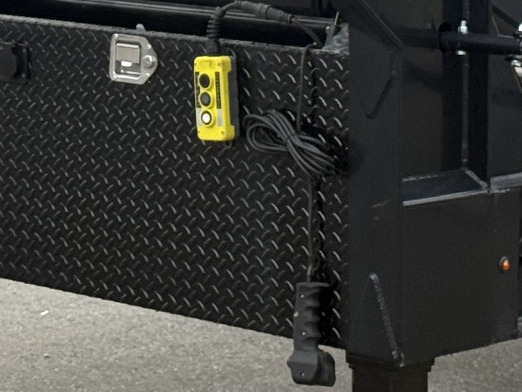 Your gear needs a secure, dry home. That’s the massive lockable toolbox mounted on the gooseneck. It's built to hold your tools, remotes, binders, and chains, keeping them organized and ready for the next job, no matter the weather.
