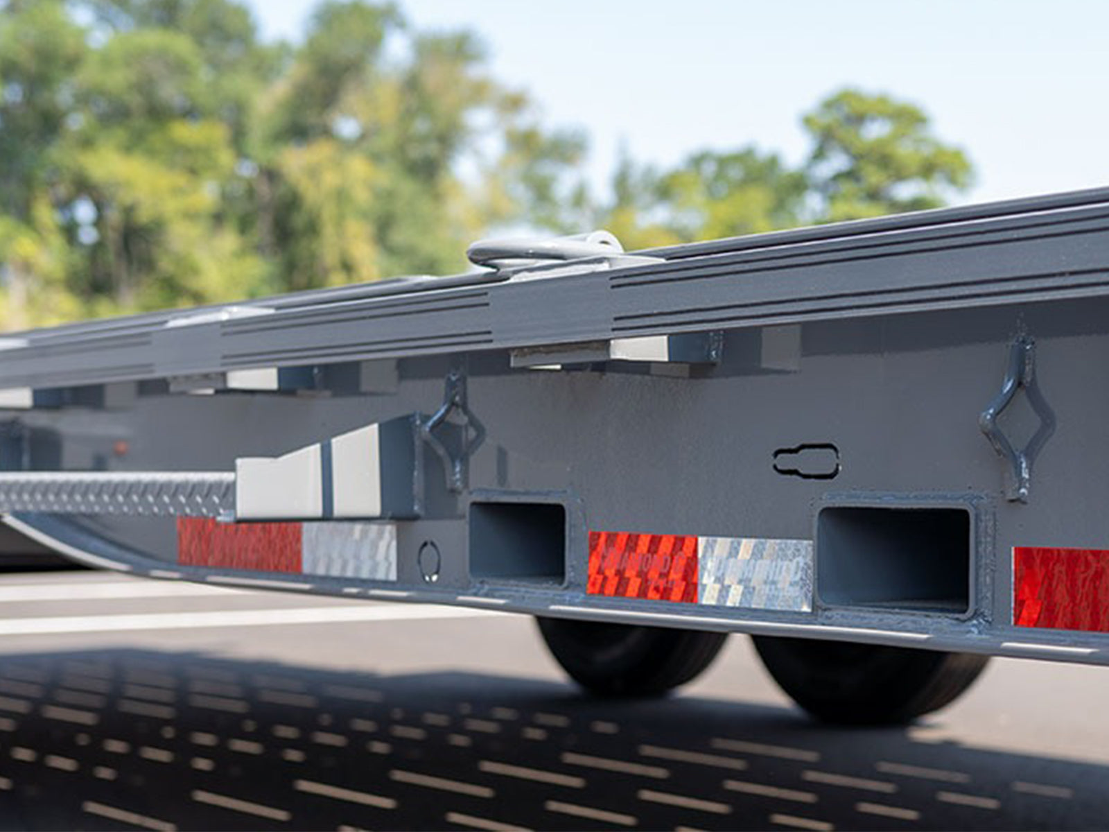 The 8-inch I-beam main frame and 3-inch crossmembers on 16-inch centers create an exceptionally strong platform. This construction minimizes flex during loading and towing, providing a stable foundation for heavy, concentrated loads.