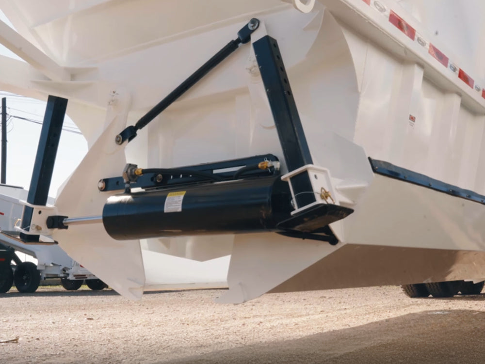 The trailer’s 3/16” steel gates are manually air-controlled and electrically operated from the truck cab for precise material release. Paired with a Vorta Valve and lubricator filter, the system ensures user-friendly and efficient unloading.