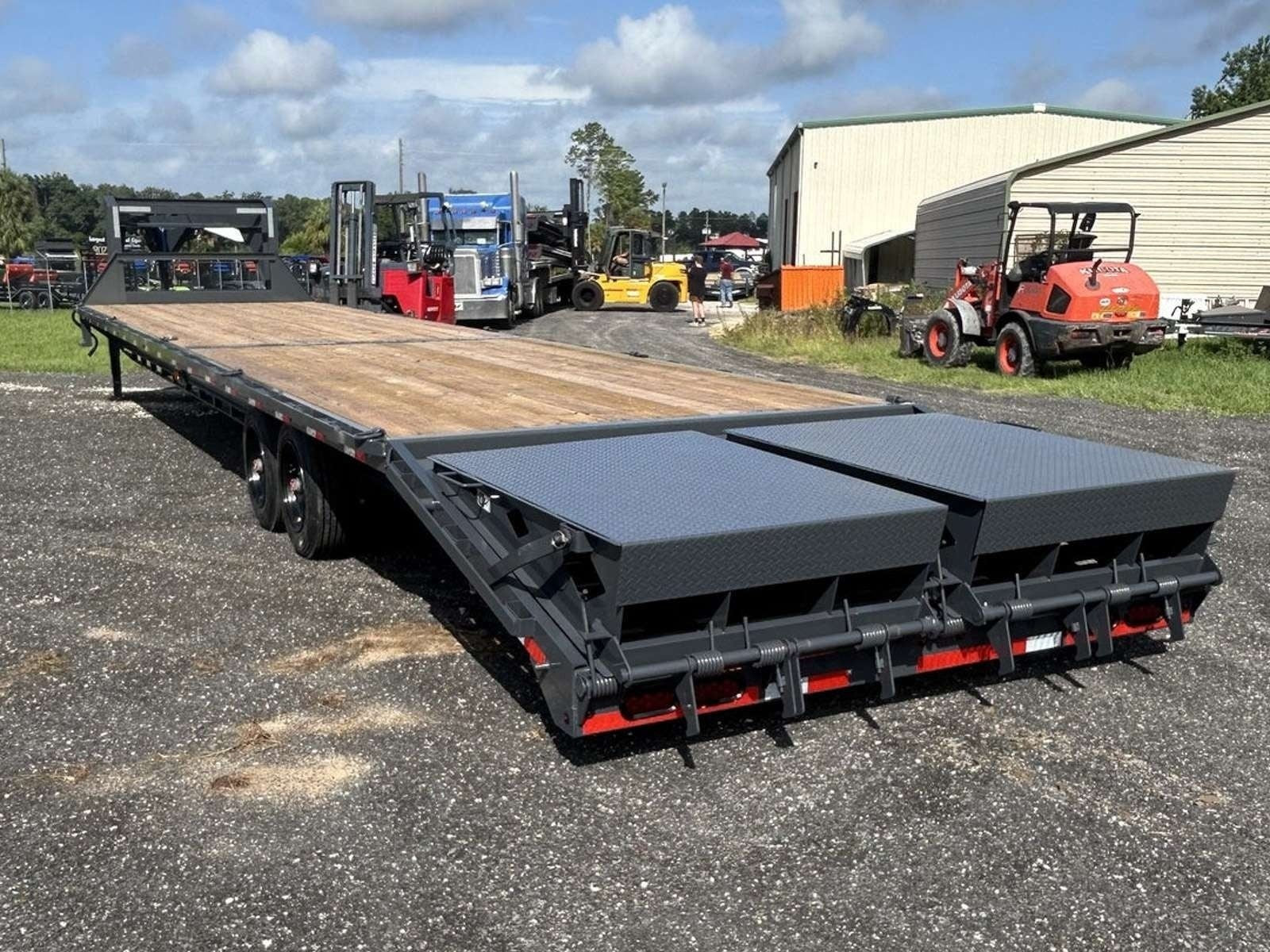 Featuring durable mega ramps, designed for easy and efficient loading of large equipment and vehicles. Their wide, sturdy design ensures stable access and quick loading, making them ideal for handling heavy or oversized loads.
