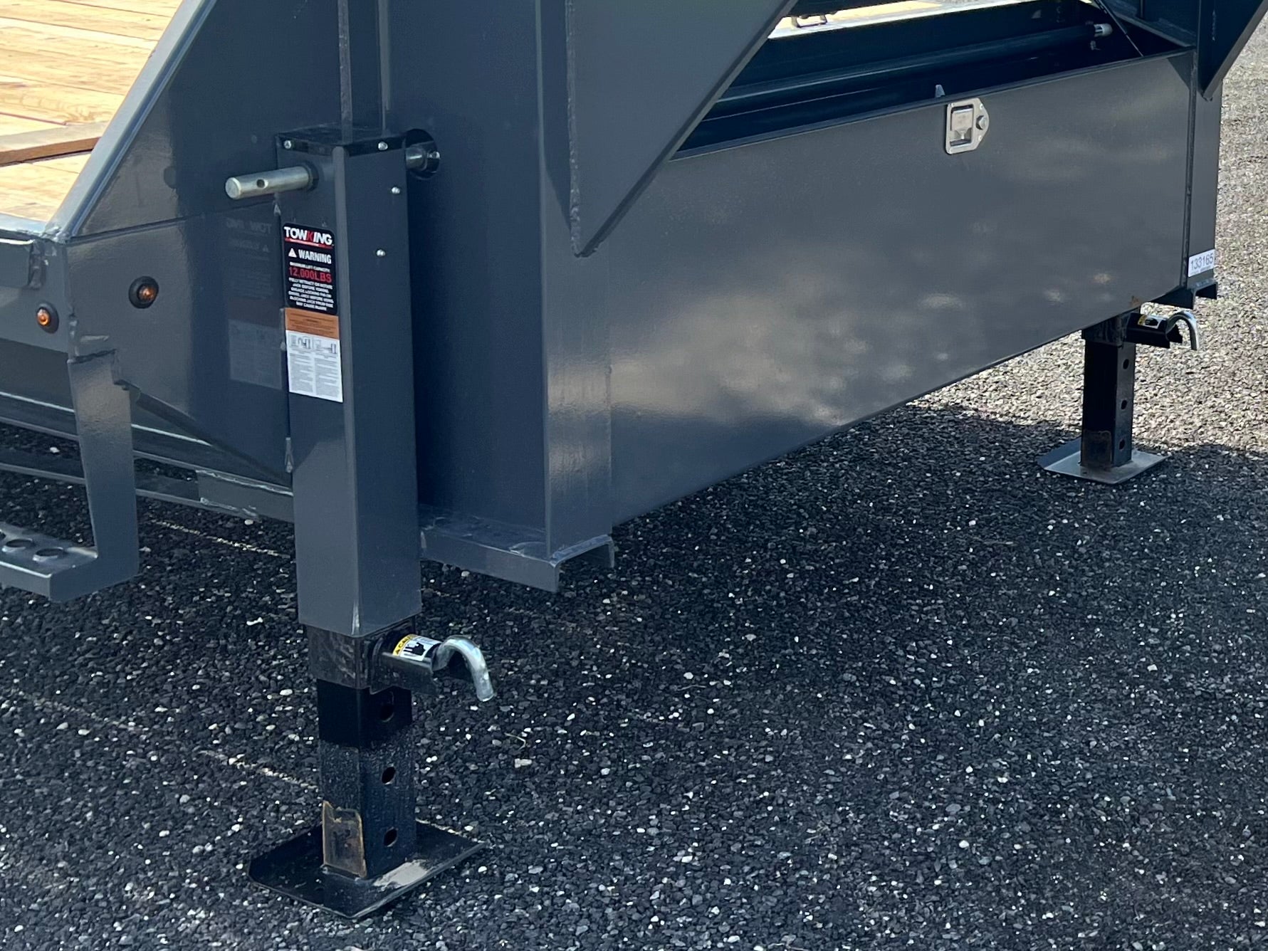 The Lamar FS Trailer features dual 10,000 lb drop-leg jacks, offering superior stability and ease of use. These heavy-duty jacks ensure quick and secure leveling, making setup and hitching smoother and more efficient.