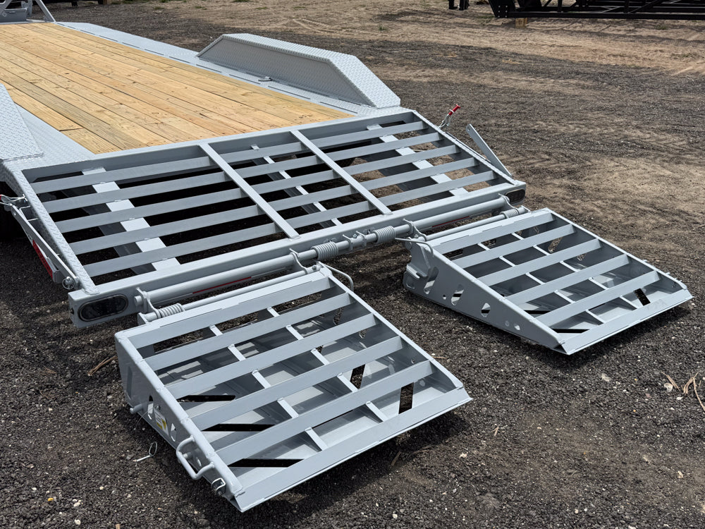 Available with mountain ramps on a 3-foot dovetail. The configuration is designed for loading equipment with low ground clearance or uneven track/wheel bases.